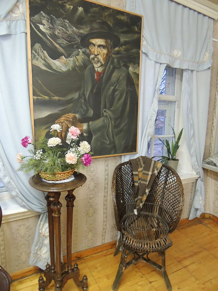 – Глядя с улицы на это неприметное деревянное здание, подумаешь: «Обыкновенный дом…. Что в нем интересного?» Но открыв двери, сразу попадаешь в другую атмосферу, в другую эпоху. Здесь время остановилось, – продолжает рассказ Ж. Жилина. – Сразу с порога, выглядывая из своей комнаты, тебя встречает сам поэт. Смотрит на тебя строгим взглядом, как будто хочет заглянуть в душу, чтобы узнать, с какими мыслями и чувствами ты пришел. И хотя в музее личных вещей Райниса нет, интерьер гостиной полностью совпадает с интерьером того времени, когда здесь жил латышский поэт. Так и хочется сесть за накрытый к чаю стол, а тепло истопленной печки располагает к задушевной беседе.