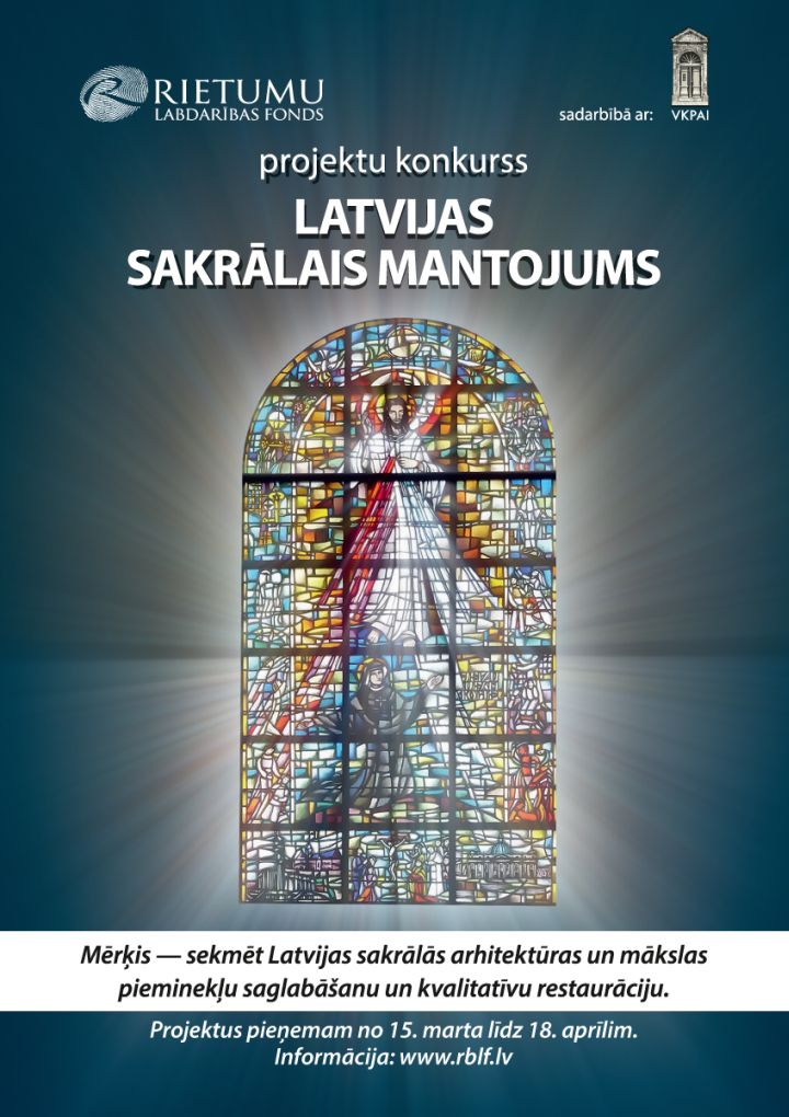 Цель конкурса – содействовать сохранению и реставрации памятников сакральной архитектуры и искусства Латвии. Жюри конкурса рассмотрит заявки как на работы по реставрации церковных зданий, башен и куполов, так и на проекты, связанные с сохранением отдельных уникальных объектов интерьера, таких как алтарные картины, люстры, паникадила и т. д.