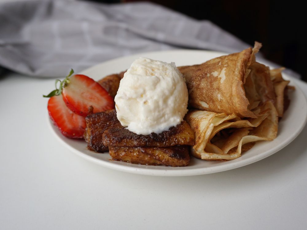 3. Карамелизированные бананы подавать горячими вместе с блинами и мороженным пломбир.