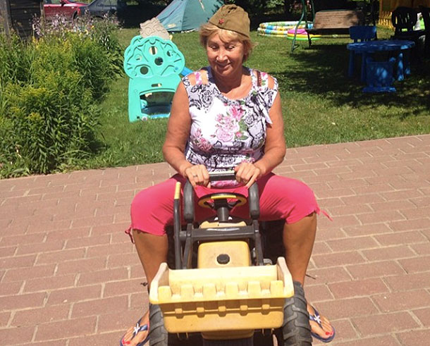 На другом фото жена Прохора отобрала у мальчишек машинку и оседлала ее, не побоявшись сломать. "Детство… детство… ты кудыыы ушло", – ностальгирует Лариса, опьяненная свежим воздухом и непередаваемым весельем.