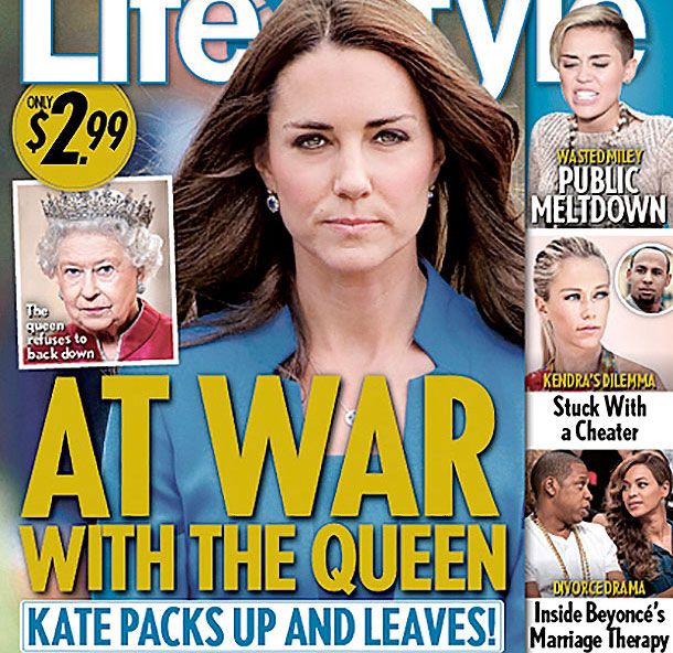 Зарубежное издание Life&Style вышло с сенсационным материалом на обложке. Якобы Кейт Миддлтон развязала войну с британской королевой Елизаветой II. Редакторы журнала утверждают, что развернувшийся скандал является чуть ли не самым крупным за всю историю семейства, и прошлые неурядицы Елизаветы II и принцессы Дианы по сравнению с нынешней ссорой просто светская беседа.
