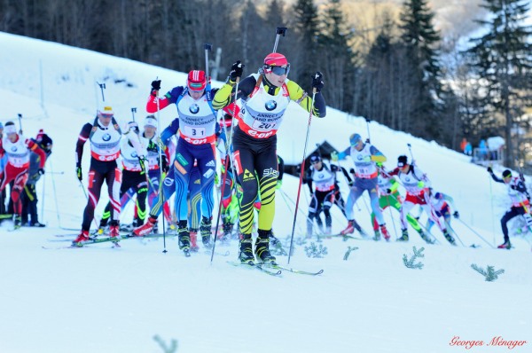 Вышедшая снова на дистанцию Дорен-Абер постепенно стала увеличивать отрыв от конкурентов. Когда она во второй раз передавала эстафету Фуркаду, то отрыв француженки от шедшей следом нрвежки Хильде Фенне составлял уже целых 50 секунд. Третьей шла немецкая команда (+55), далее — Италия (+57), Россия (+1:00), Австрия (+1:03) и Украина (+1:07). Бендика снова сдала позиции Латвии, откатившись на 12-ю строчку.