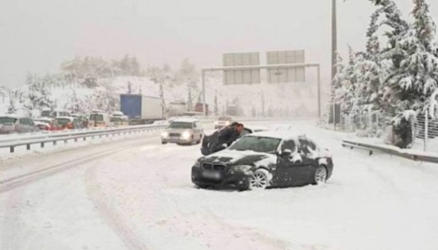 В Греции из-за мощного снегопада на Национальной автотрассе Аттики-Одос оказались заблокированы около пяти тысяч водителей. На их спасение была направлена армия. Об этом сообщает Protothema.
