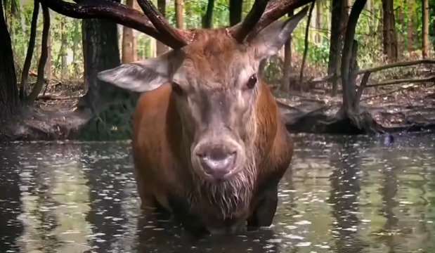 Животное зашло в водоём и тщательно вымыло рога. Такое поведение оленя для ранней осени выглядит необычно, в сентябре самцы ведут себя совсем иначе: катаются в грязи, метят брюхо запахом мочи и устраивают шумные поединки за внимание самок. Скорее всего, видео сделано чуть раньше, чем начался гон.