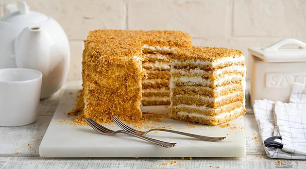Этот медовик — настоящая находка для любителей торта, не желающих проводить часы на кухне.