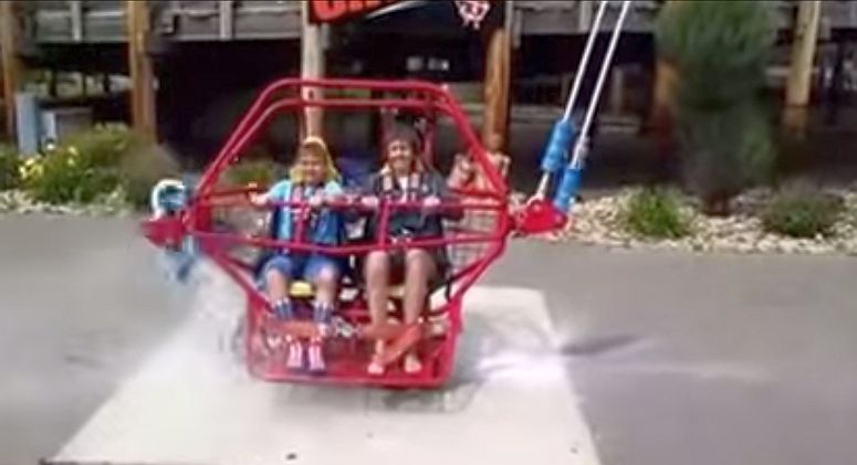 На опубликованных ниже кадрах запечатлено, как подросток и женщина сидят внутри "Катапульты" и готовятся к старту. Кабина должна была с огромной скоростью взлететь в воздух, а затем резко устремиться вниз, повиснув на тросах в нескольких метрах над землей.