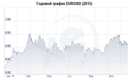 Средневзвешенный прогноз: несмотря на хорошие валютные данные к концу 2015 года, в следующем году вероятность достижения паритета с долларом все же останется крайне высокой (предполагается, что это произойдет летом). По оценкам специалистов HSBC Holdings и Banco Santander, к концу 2016 года евро опуститься в стоимости до 1,05-1,10 EUR/USD.