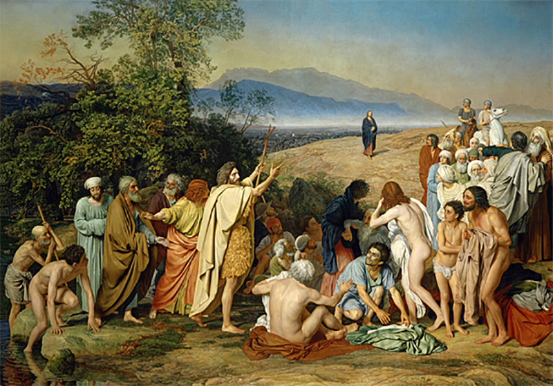 Потом критики признают, что, несмотря на обилие деталей и многообразность композиции «Явления Христа народу», она чудесно сбалансирована. Своеобразный центр полотна – мальчик в синем плаще перед Иоанном Крестителем. Сам Иоанн – своего рода ось, к нему смещается взгляд, на какой бы фигуре он изначально ни находился, и затем устремляется за вытянутой рукой – в сторону Спасителя.