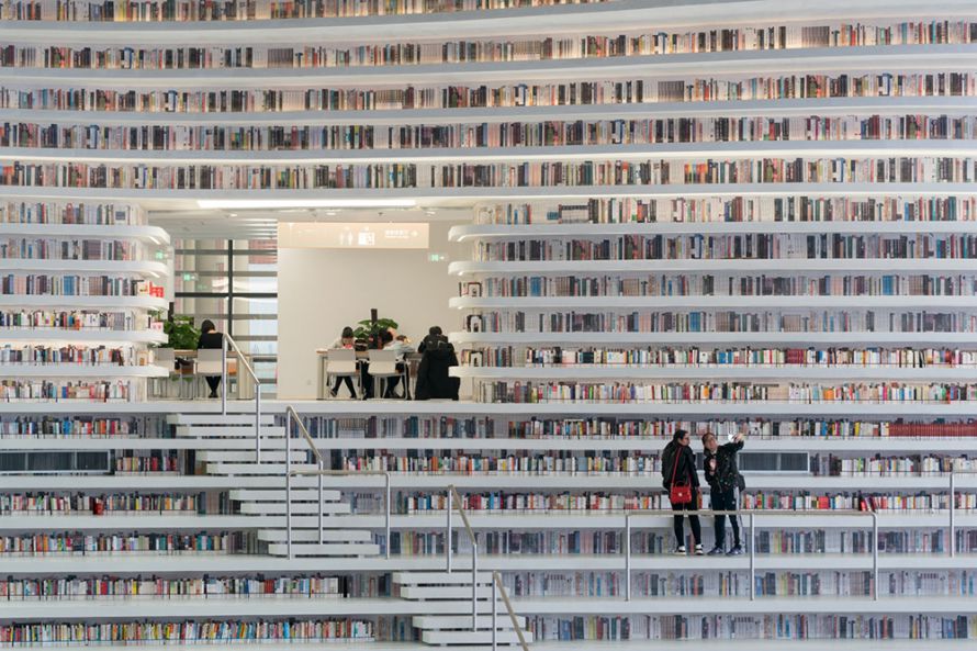 Интерьер библиотеки напоминает бесконечную книжную полку с 1,2 миллионом книг.