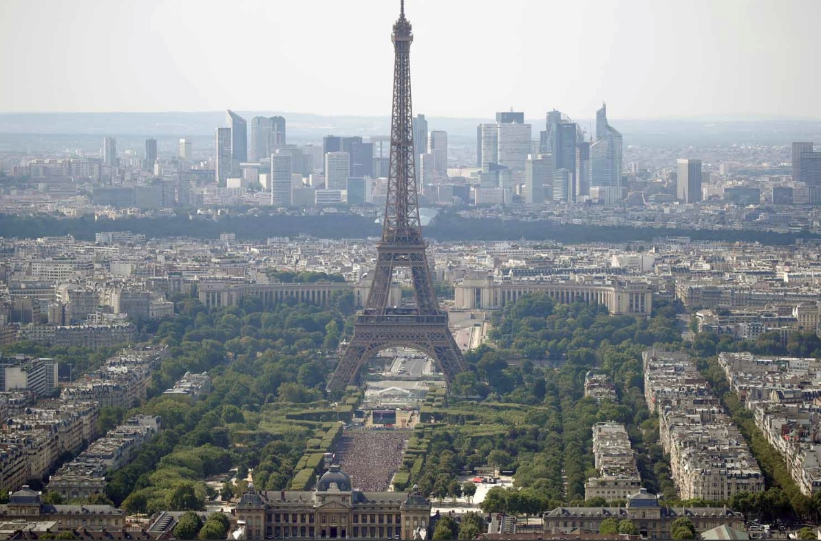В Париже возле Эйфелевой башни специально к финалу ЧМ-2018 подготовили фан-зону на 90 тысяч человек и установили экран размером 102 кв. м. Представляете накал страстей после победы национальной сборной? Напомним, в зрелищном матче сборная Франции оказалась сильнее и обыграла команду Хорватии 4:2.